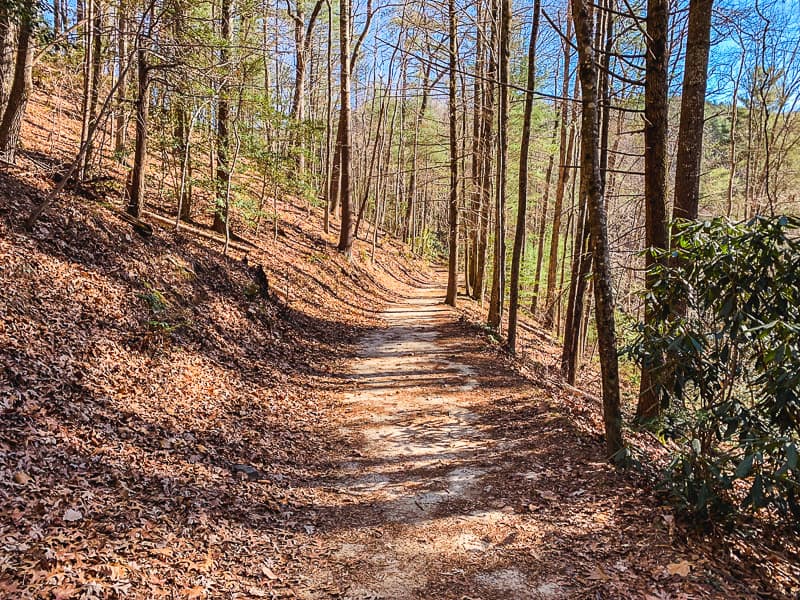 You’ll make a right and hike 1.6 miles until you reach the intersection with the back side of the High Shoals Falls Loop. It’s a nice trail down, although there’s no view of the waterfall going this way.