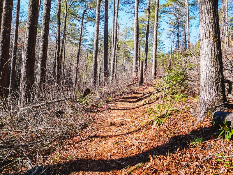You’ll reach the Shinny Trail intersection on your left in 0.8 miles (It’s about 0.2 miles past the sign for the Jacob’s Branch Campsites)