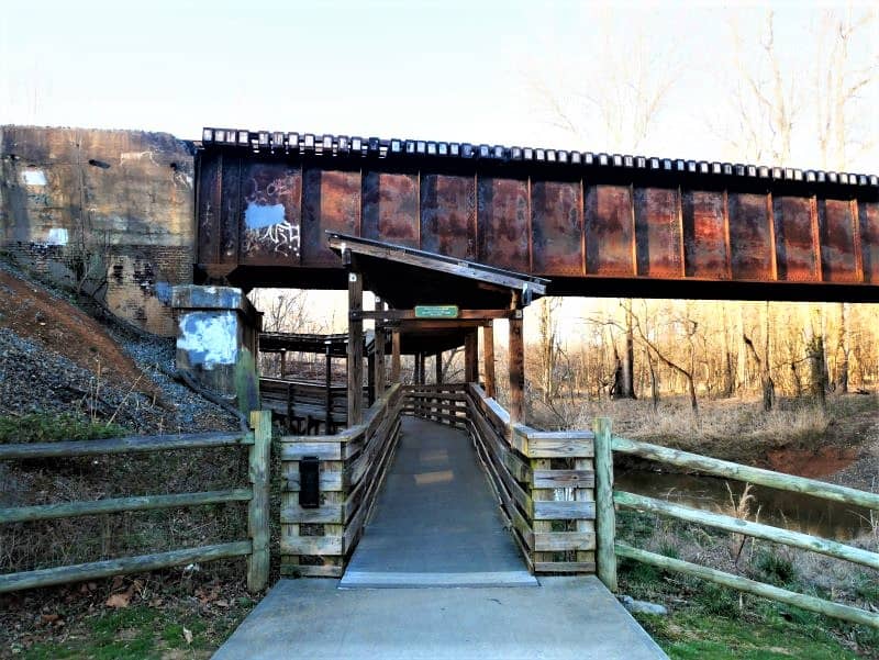 Many areas of North Carolina have a greenway and here, it’s called the River Walk. It officially starts at the Occoneechee village replica and ends at Gold Park, but there’s a trail on private property that continues the walk down to the Occoneechee speedway.