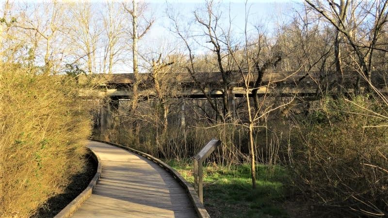For the most part, the River Walk keeps you close to the Eno River. You’ll wind around and over it as it moves from your left to your right in a windy, relaxing setting. The trail is paved making it perfect for pushing a stroller, walking, and running.