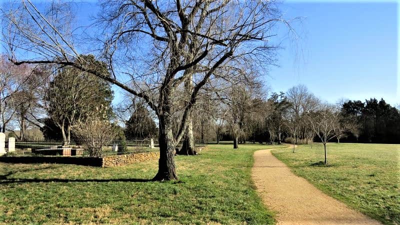 The walk will take you past the house, through sparsely wooded areas, and around a pond. In many places it circles large spans of inviting green lawns, just begging you to sit and stay awhile.