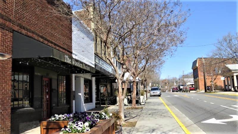 View of Panciuto and Saratoga Grill on Churton Street in Hillsborough, NC.